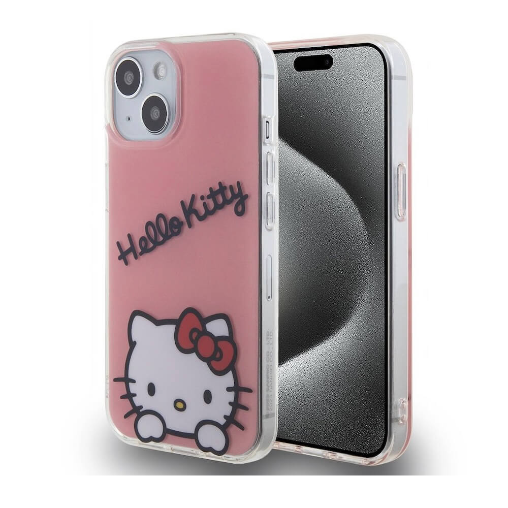 Дизайнерски силиконов кейс за iPhone 15 - Hello Kitty IML Daydreaming Logo Case (розов)