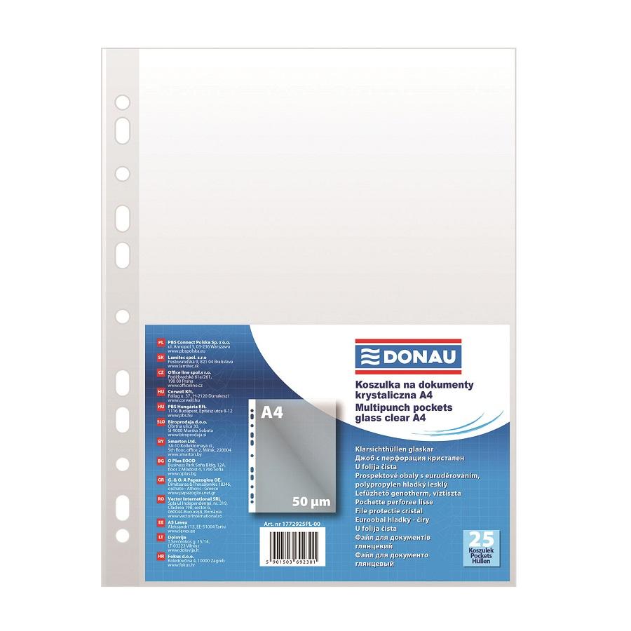 Джоб с европерфорация DONAU, A4, РР 50 mic, кристал, 25 бр.