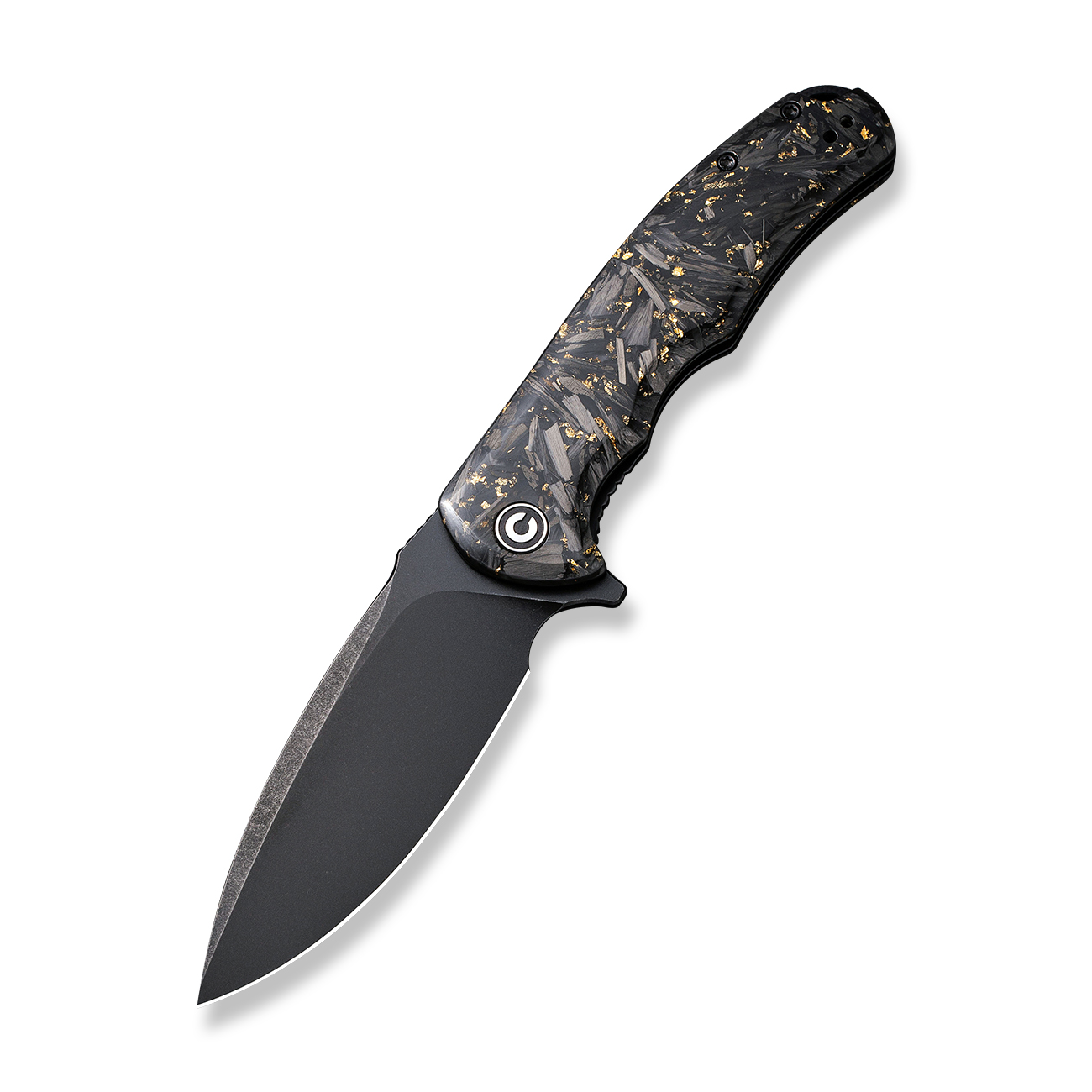 Материал на дръжката: нарязани въглеродни влакна и златисти парчета в прозрачна смола