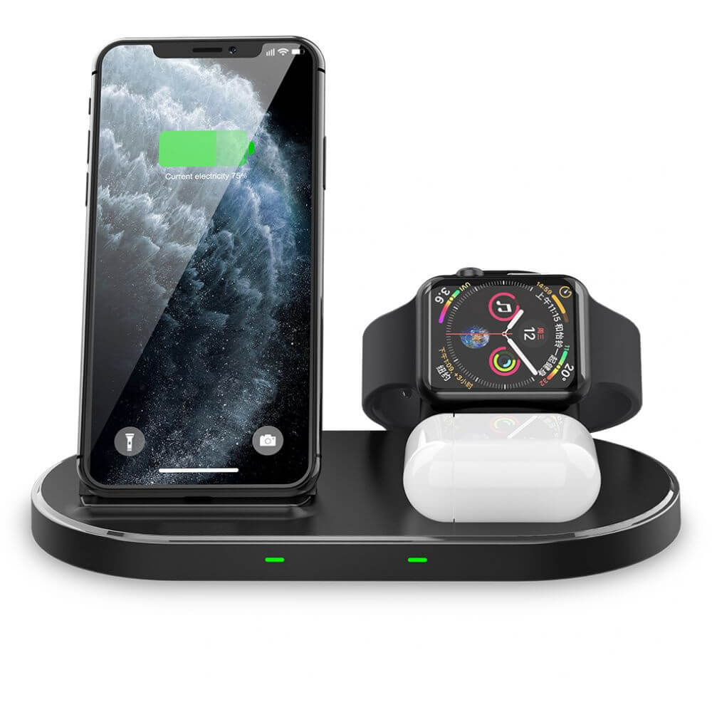 Док станция и поставка за безжично зареждане на Qi съвместими устройства, Apple Watch и Apple AirPods - Tech-Protect W55 3in1 Wireless Charging Station (черен)
