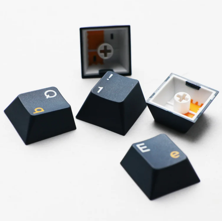 ![]() | Triple-Shot PBT Keycaps* *Only applicable to the ANSI layout; the ISO layout uses double-shot molding. The triple-shot method involves using three different colors of plastic. The second and third plastics are injected into the first mold to fill up the space of the keycap, allowing legends to never fade away even after years of excessive use.