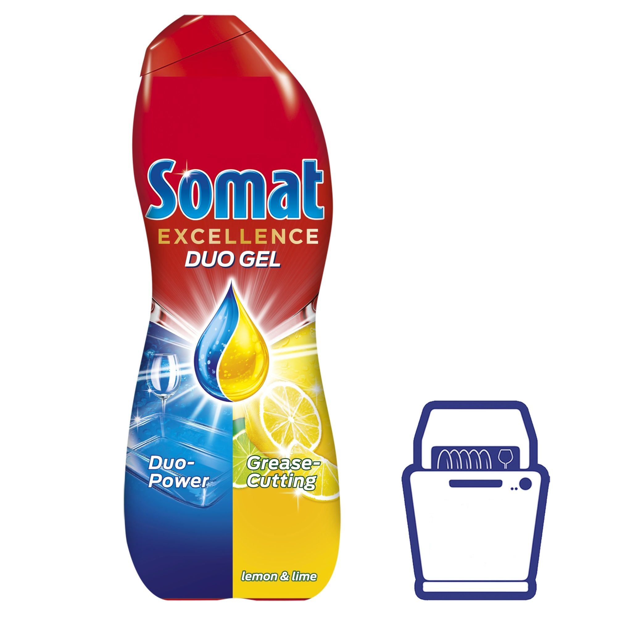 Дуо гел за съдомиялна машина Somat Excellence, аромат на лимон и лайм, 684 мл