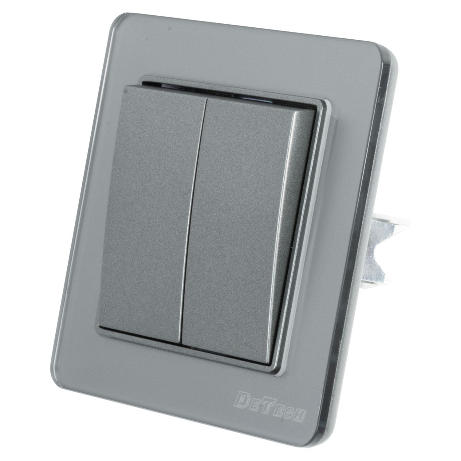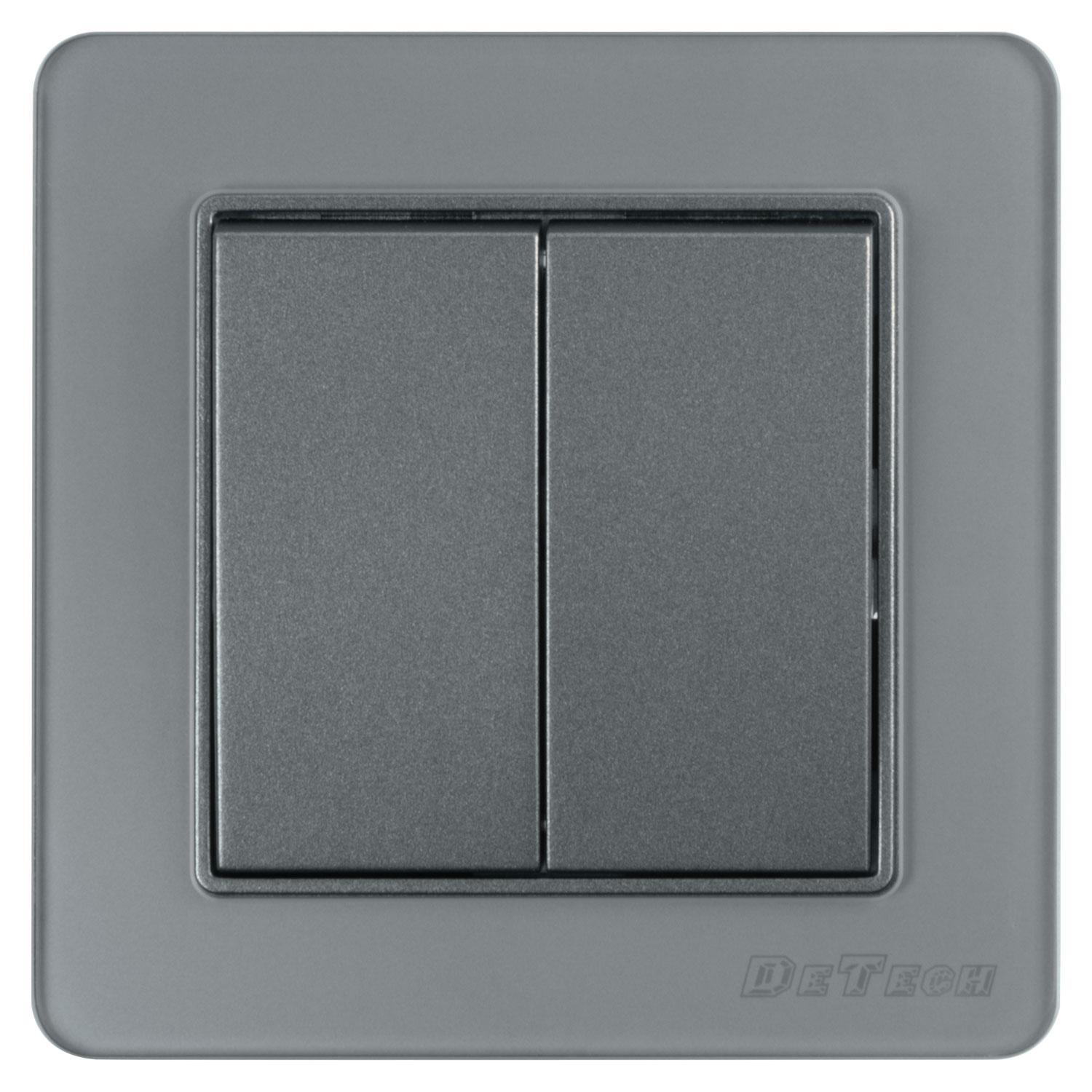 Двоен ключ за осветление DeTech DE-6008-02 (схема 5) с класически квадратен дизайн, в сив цвят.