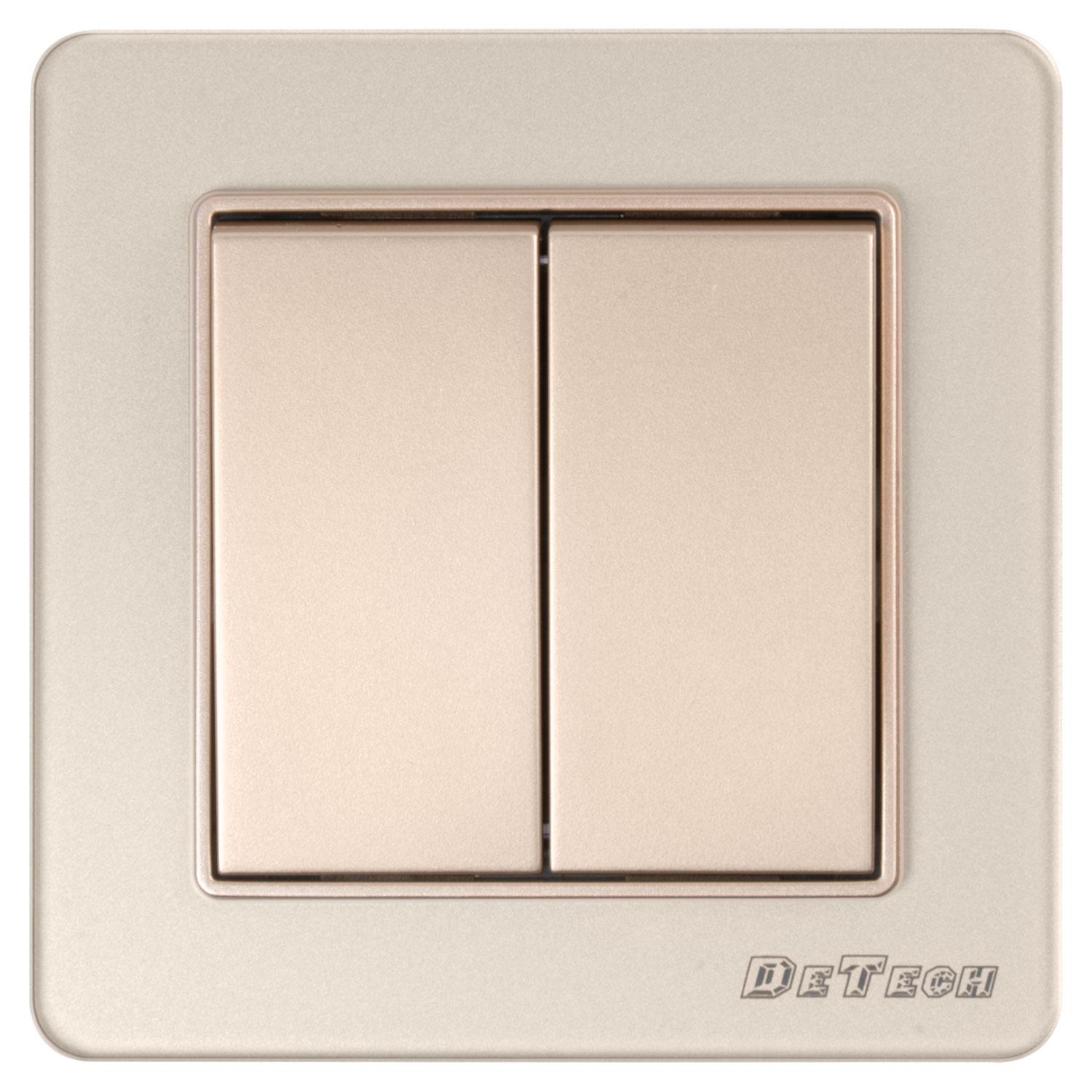 Двоен ключ за осветление DeTech DE-6008-02 (схема 5) с класически квадратен дизайн, в златист цвят.