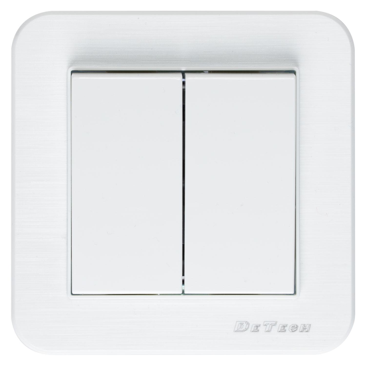 Двоен ключ за осветление DeTech DE-9223-02 (схема 5) с класически квадратен дизайн и декоративна рамка, в бял цвят.
