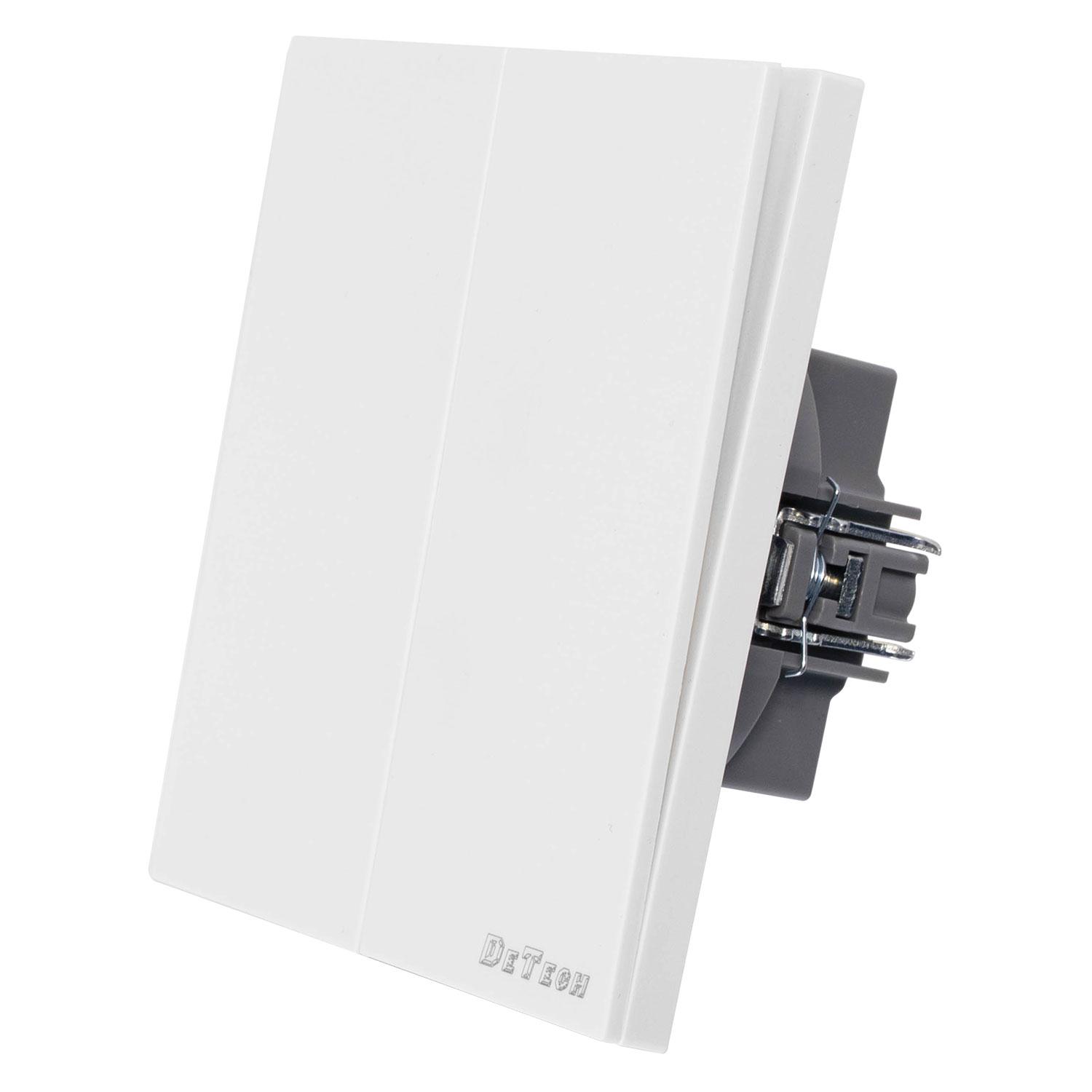 Двоен ключ за осветление DeTech DE-9225-02 (схема 5) с класическа квадратна форма, в бял цвят.