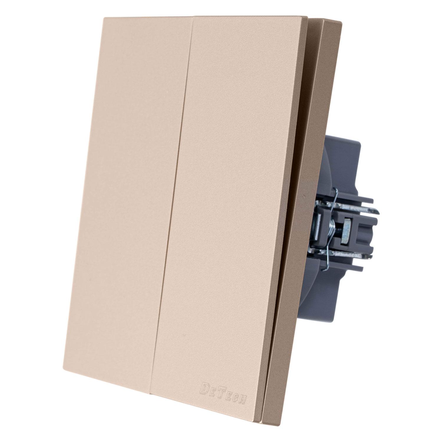 Двоен ключ за осветление DeTech DE-9225-02 (схема 5) с класическа квадратна форма, в златист цвят.