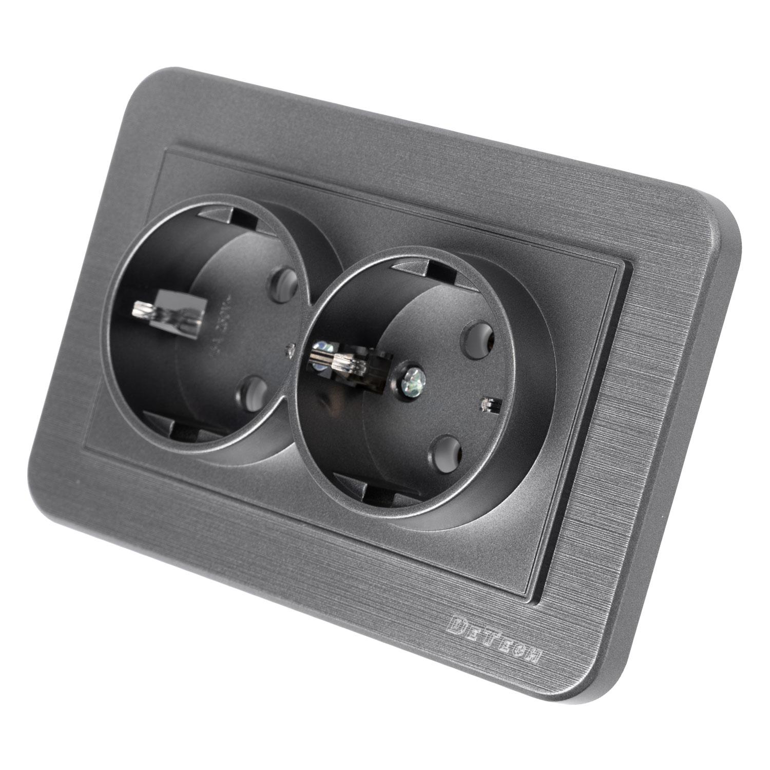 Двоен електрически контакт DeTech DE-9223-52 за вграждане, тип "Шуко", със защита IP20.