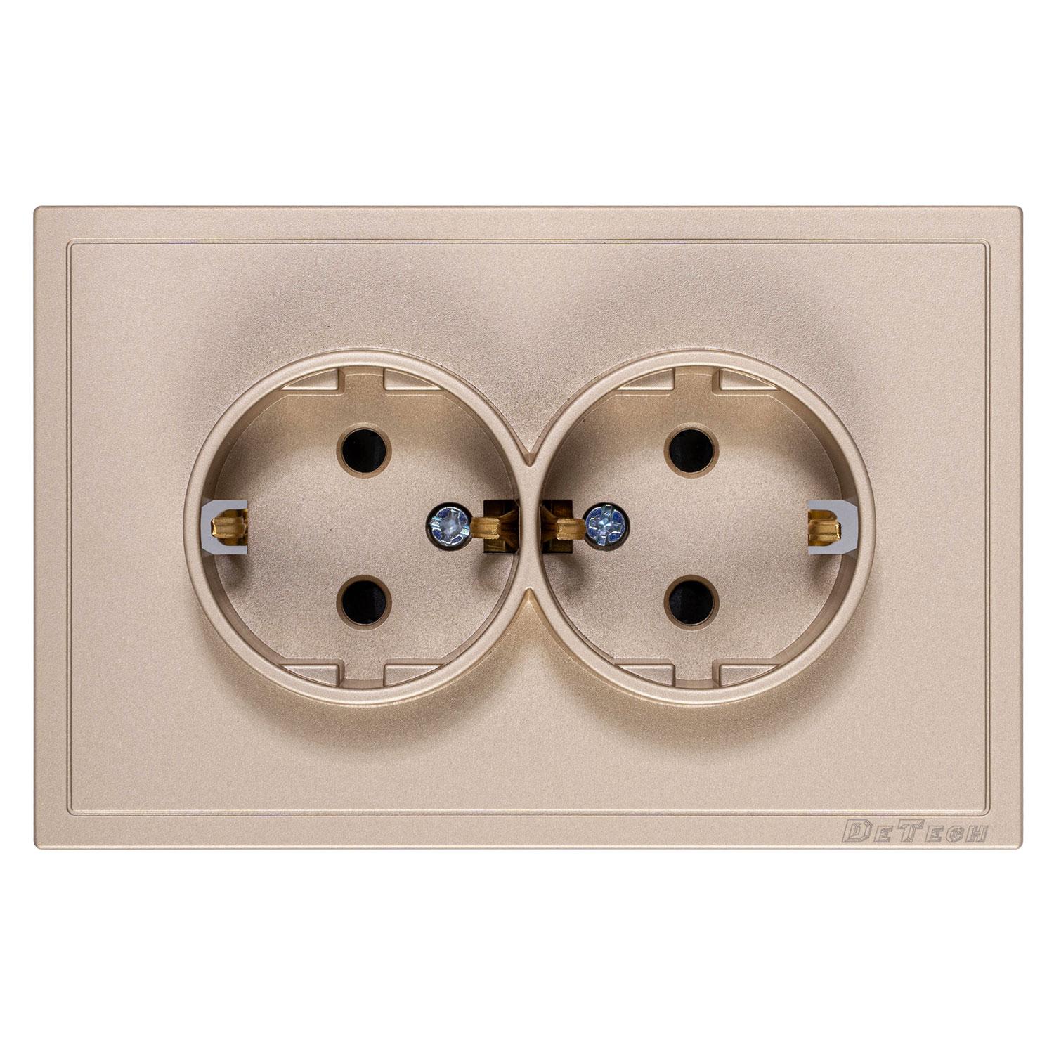 » Двоен електрически контакт DeTech DE-9227-52, С рамка, Мат, Шуко, 16А, 250V, За вграждане, IP20, Златист - 75125