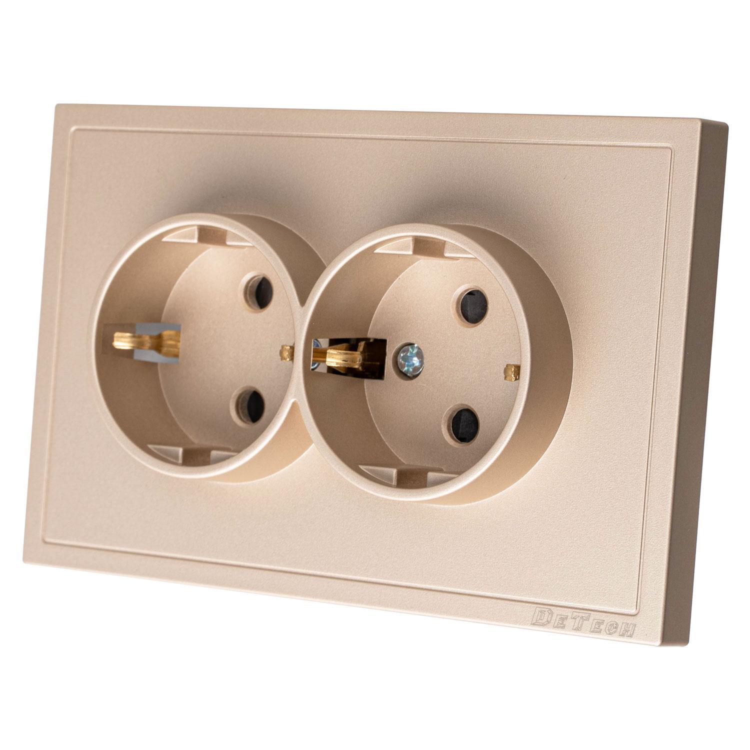 Двоен електрически контакт DeTech DE-9227-52 за вграждане, тип "Шуко", със защита IP20.