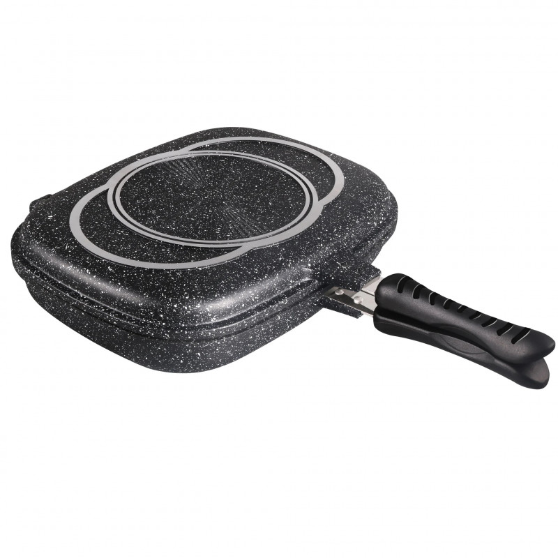 - Дръжки с ергономичен захват, приятни на допир, имат вграден магнит, практически уплътняващ тигана.
