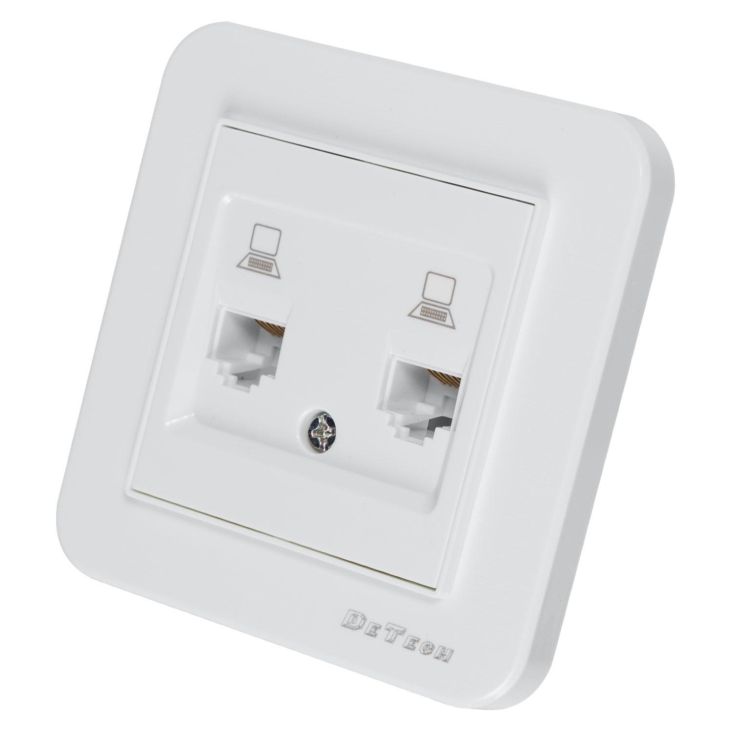 Двойна розетка за компютър DeTech DE-9223-62, RJ45, Cat5E, За вграждане, IP20, Бял - 75036