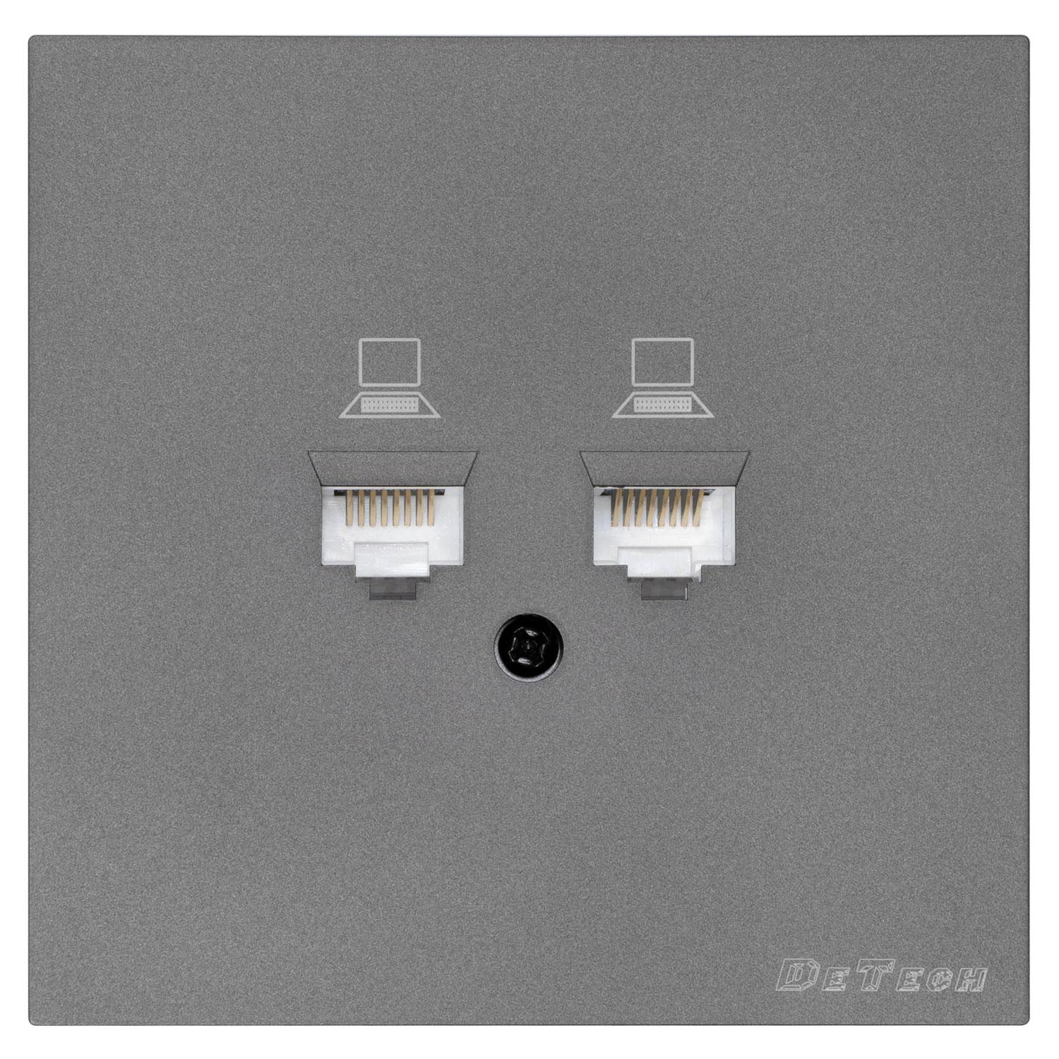 Двойна розетка за компютър DeTech DE-9225-61, RJ45, Cat5E, Slim, Мат, За вграждане, IP20, Сив - 75103