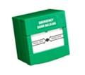 Двуполюсен възстановяем авариен бутон за контрол на достъп от трудно горим материал ABS. Зелен. Размери 86х86х56mm. Изход: 2х NO/NC/COM. Захранване: 36VDC/3A. Работна температура: +10⁰+55⁰С.