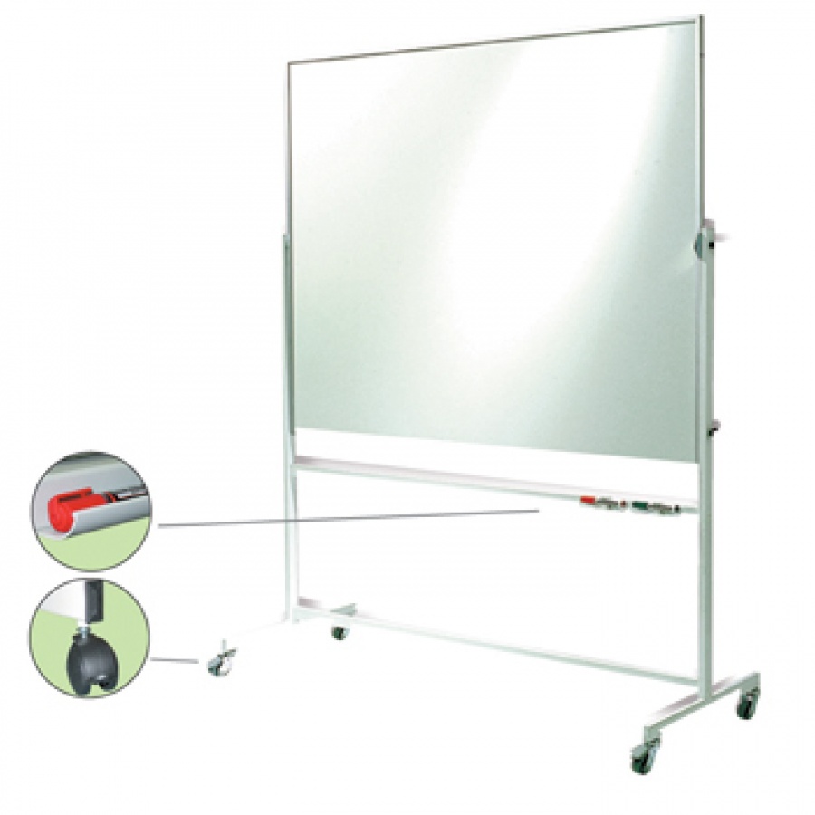 Двустранна бяла дъска Bi-Office REVOLVER, 1200x900 мм, метална стойка на колела