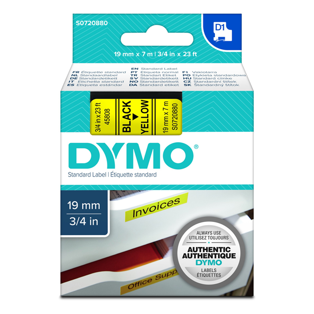 DYMO D1 (720880) TAPE 19mm BLACK/YELLOW (S0720880) (DYMO45808)