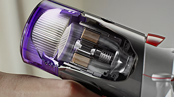 ![]() | Дигитален мотор Dyson V8 Цифровият мотор Dyson V8 е специално проектиран да осигурява мощно, постоянно засмукване от 115 AW. |