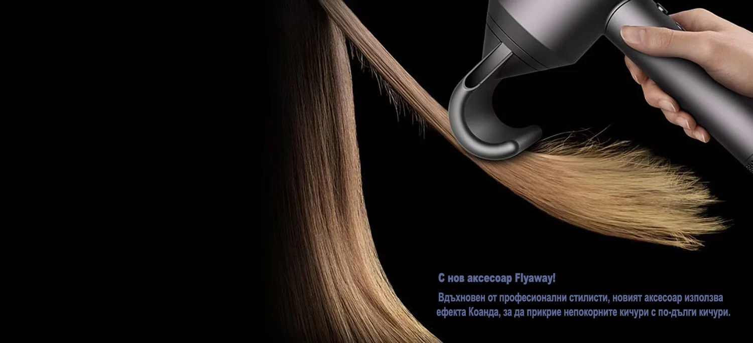 Аксесоар Flyaway Идеалният аксесоар за елегантни прически на права коса. Скрива непокорните кичури под по-дълги кичури за гладка и блестяща коса. Използвайки само въздух. | ![]() |