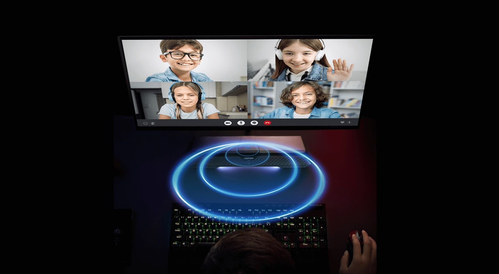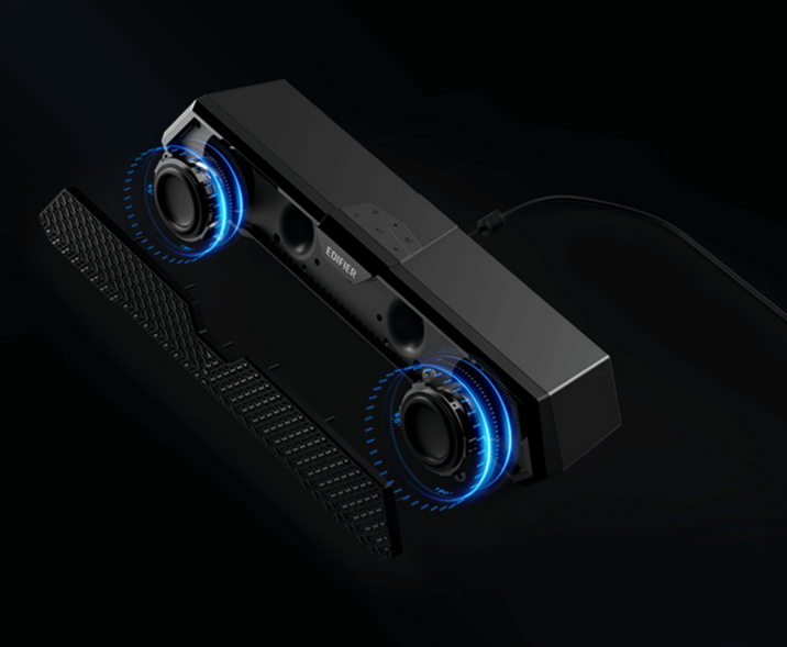 The speaker is specially designed with a slight tilting. This design can help direct sound to your ears, which is more suitable for near-field listening.