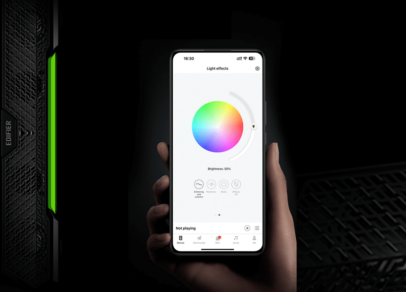 Your Color Palette Companion of Your Moods With Edifier Connect app, you can modify about 16.8 million colors for RGB light strip. Enjoy yourself with varied light effects accompanying your daily feelings. | ![]() |