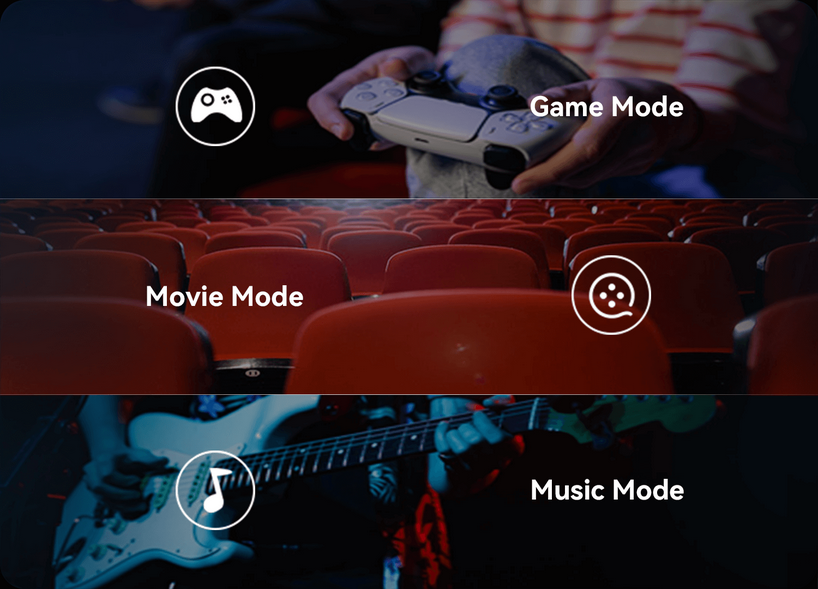 ![]() | Multiple Sound Modes Three preset sound modes are available on Edifier Connect app for gaming, watching movies, and listening to music. |