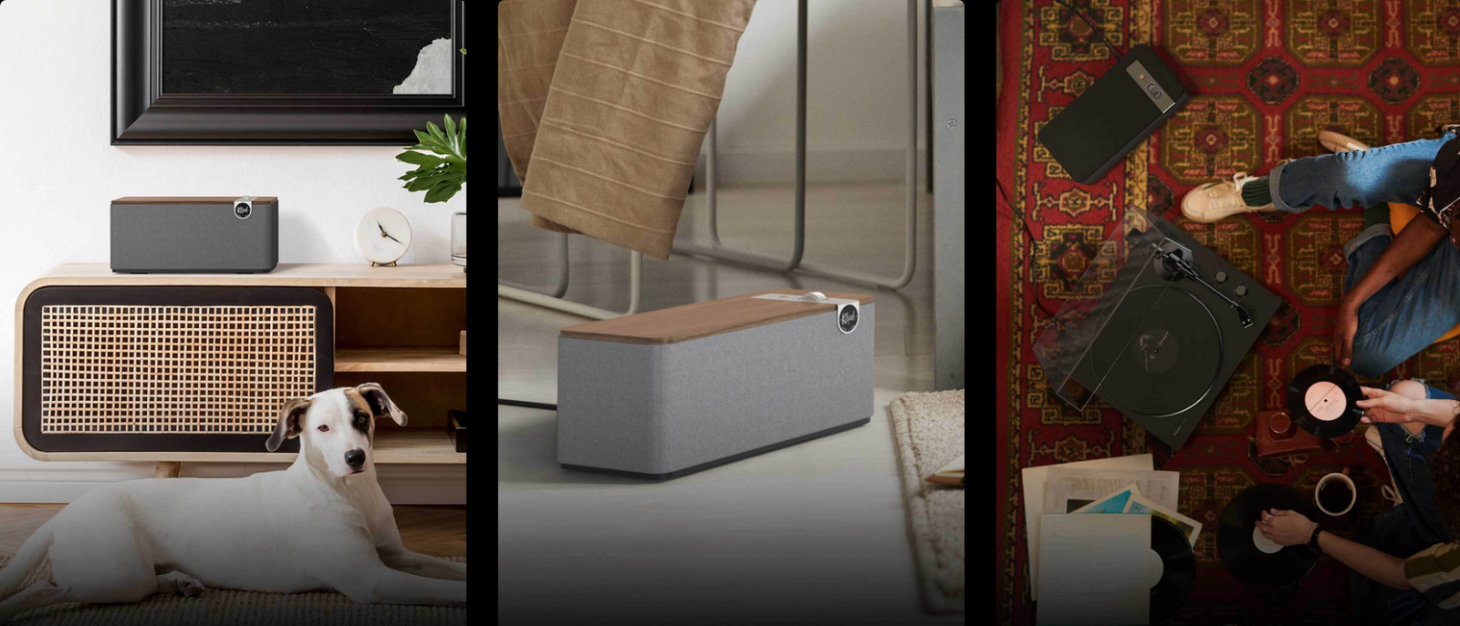 Small yet mighty At 12” wide x 6.39” deep x 6” tall, The One Plus can be placed virtually anywhere. | Modern heritage The One Plus comes in modern walnut and ebony finishes to fit your personal aesthetic. | USB-C ready Connect your favorite devices via USB-C for playback and reverse charging. |