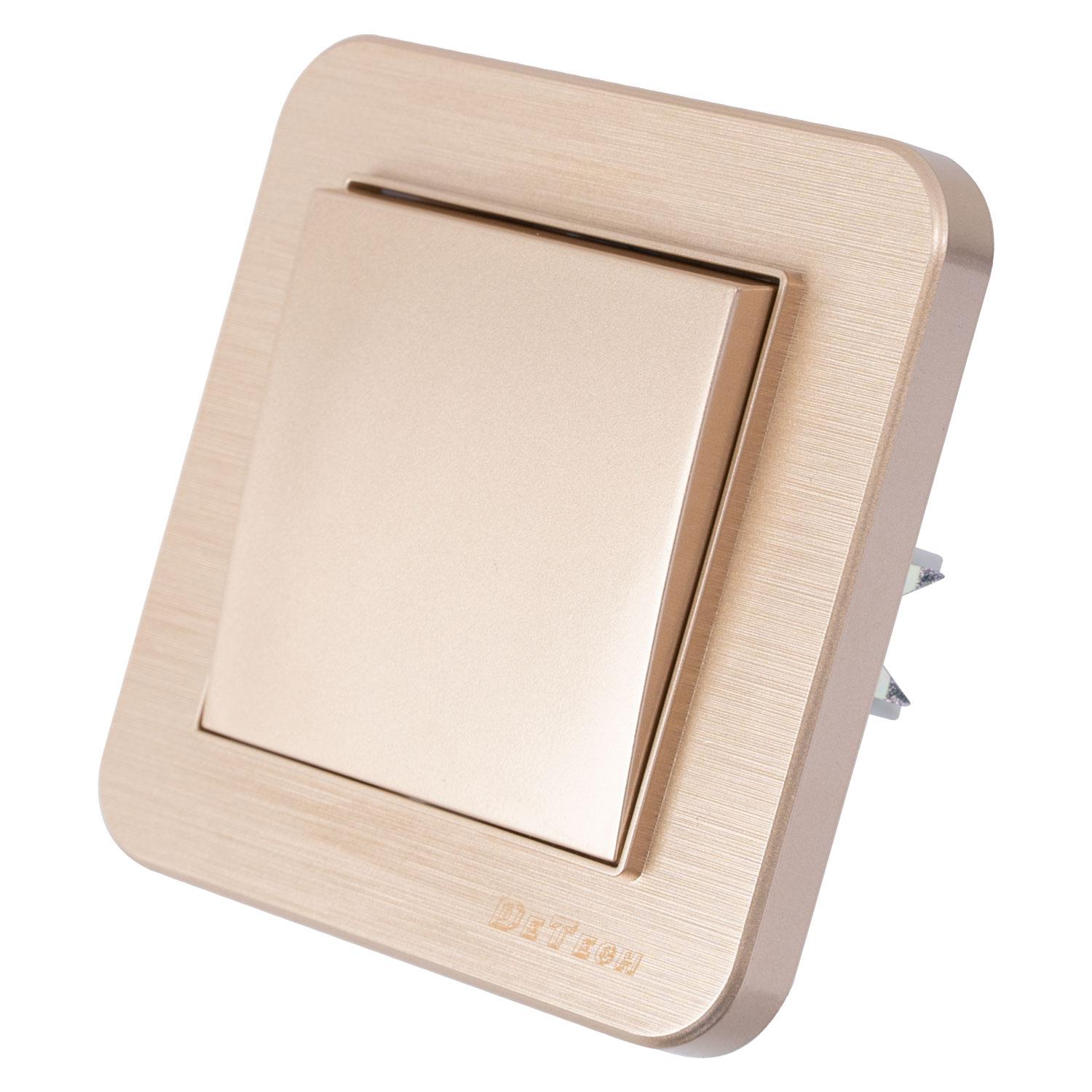 Единичен ключ за осветление DeTech DE-9223-01 (схема 1) с класически квадратен дизайн и декоративна рамка, в златист цвят.