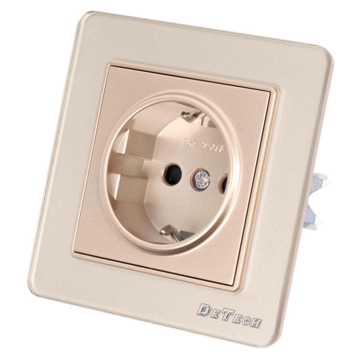 Единичен електрически контакт DeTech DE-6008-42 за вграждане, тип "Шуко", със защита IP20.