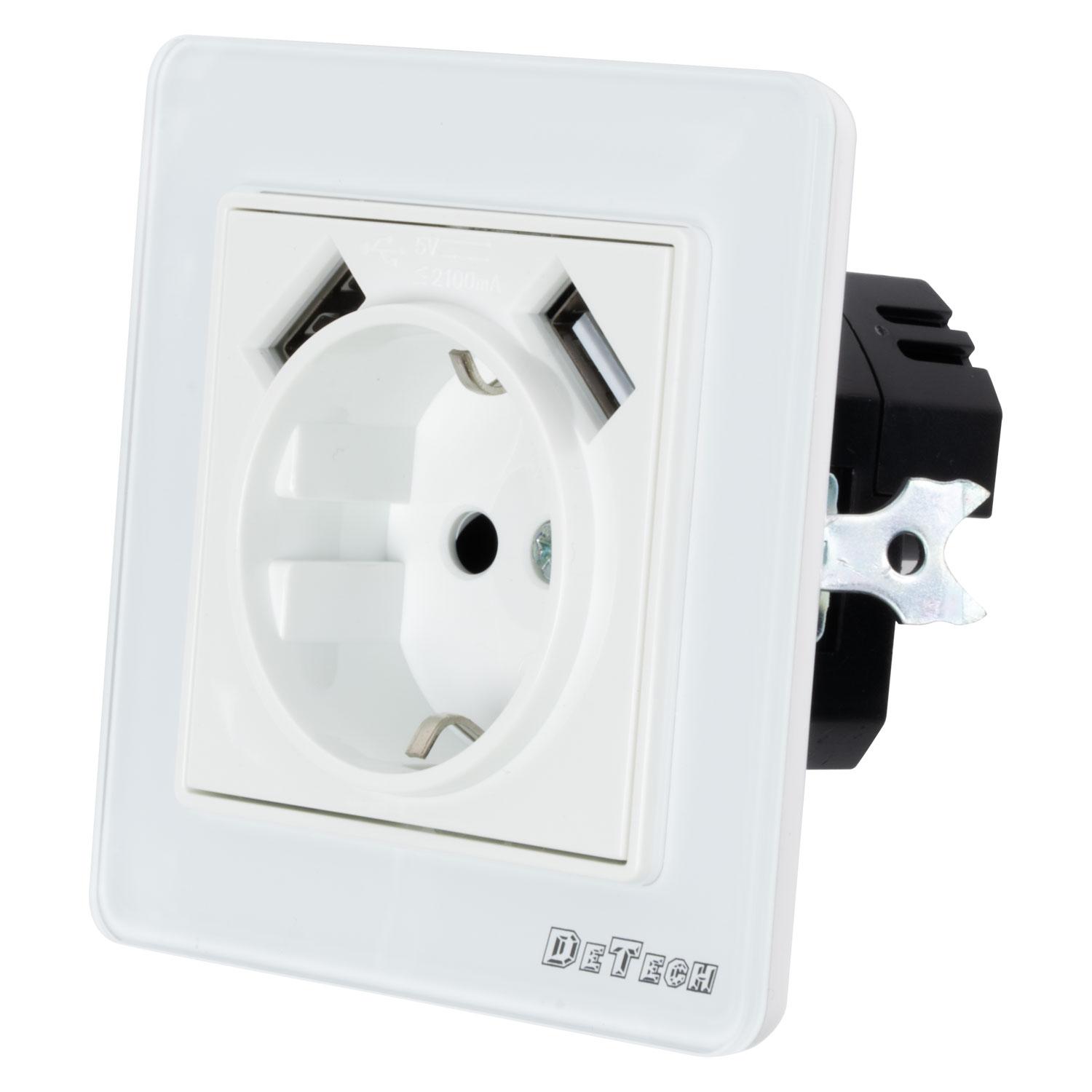Единичен електрически контакт DeTech DE-6008-78 за вграждане, тип "Шуко" и 2 USB изхода, със защита IP20.