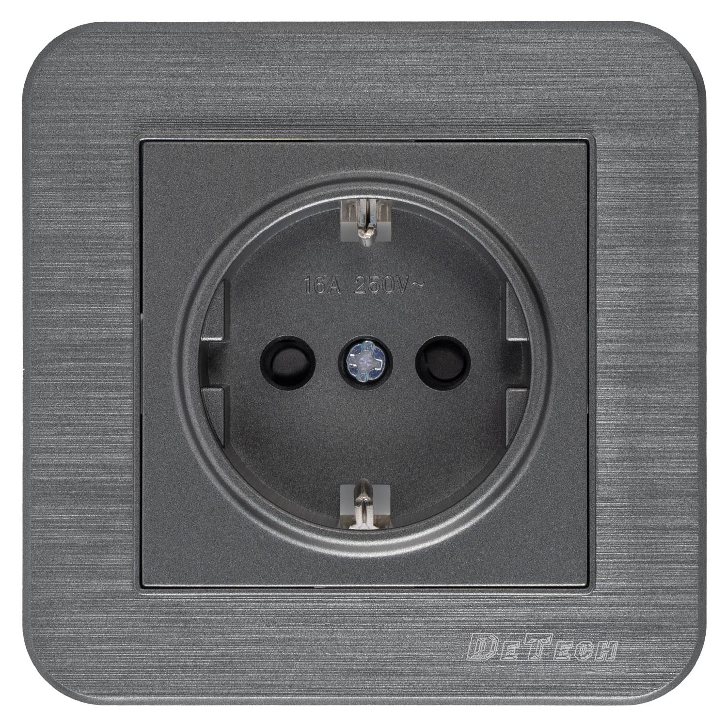 Единичен контакт за осветление DeTech DE-9223-42 (схема 1) с класически квадратен дизайн в сив цвят.