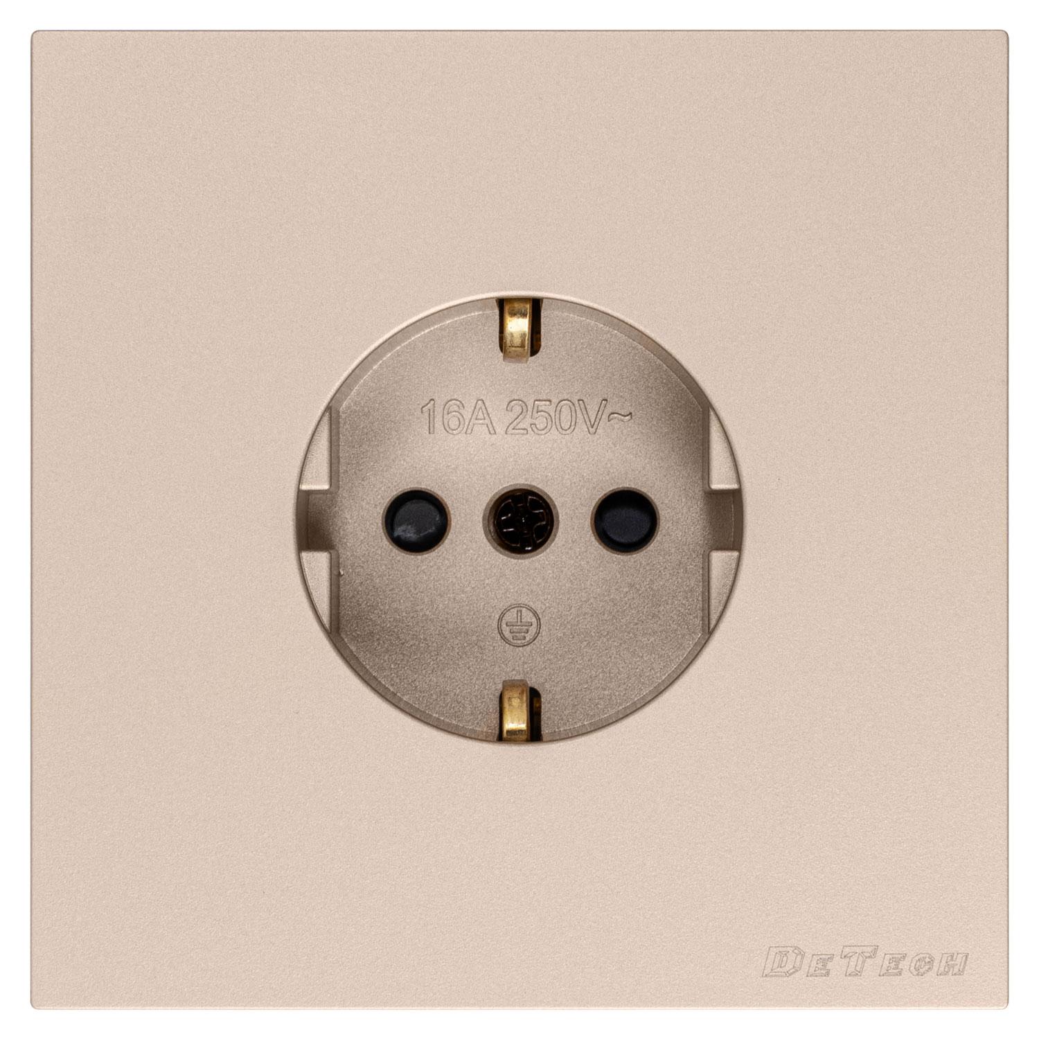 » Единичен електрически контакт DeTech DE-9225-42, Шуко, Slim, Мат, 16А, 250V, За вграждане, IP20, Златист - 75088