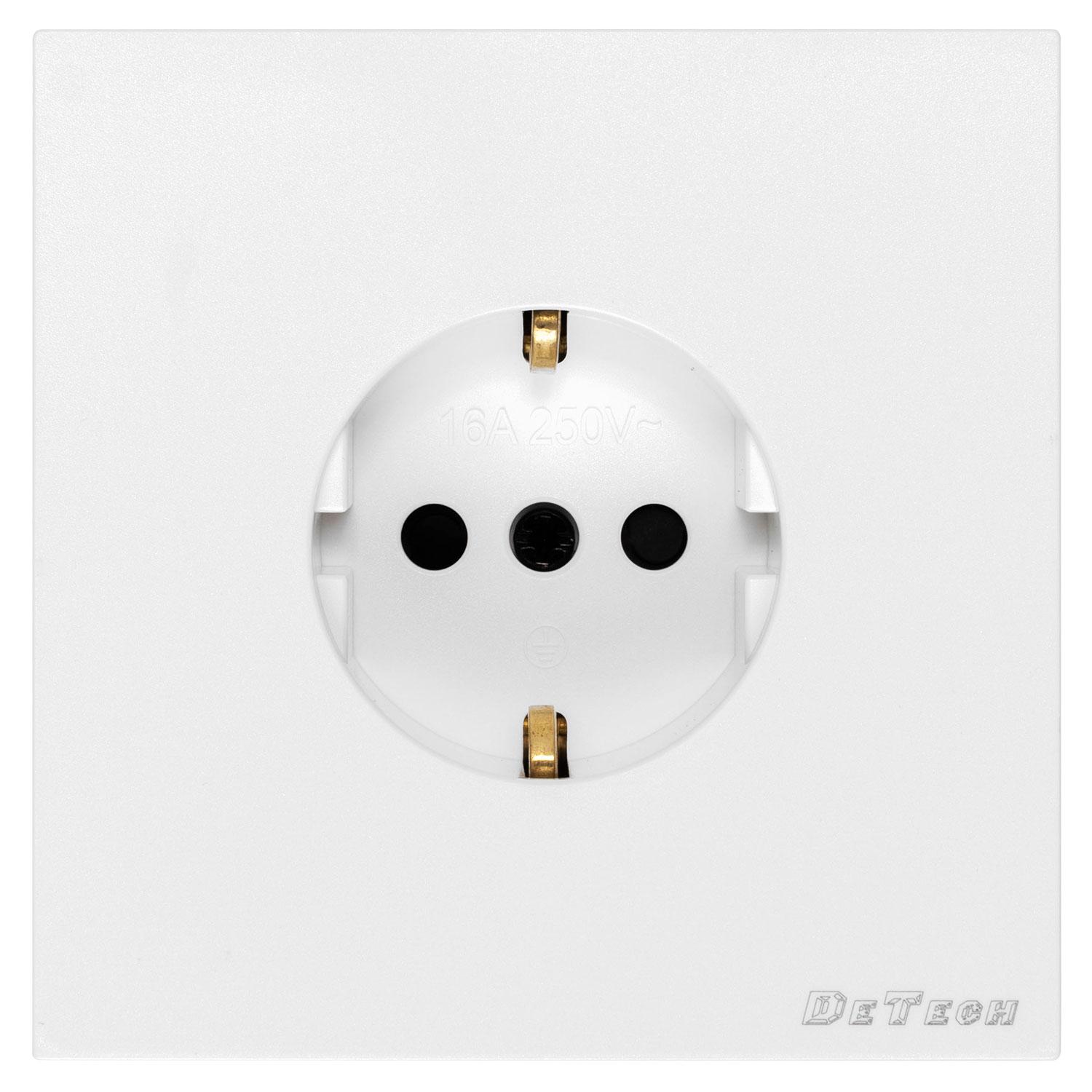 » Единичен електрически контакт DeTech DE-9225-42, Slim, Мат, Шуко, За вграждане, 16А, 250V, IP20, Бял - 75077