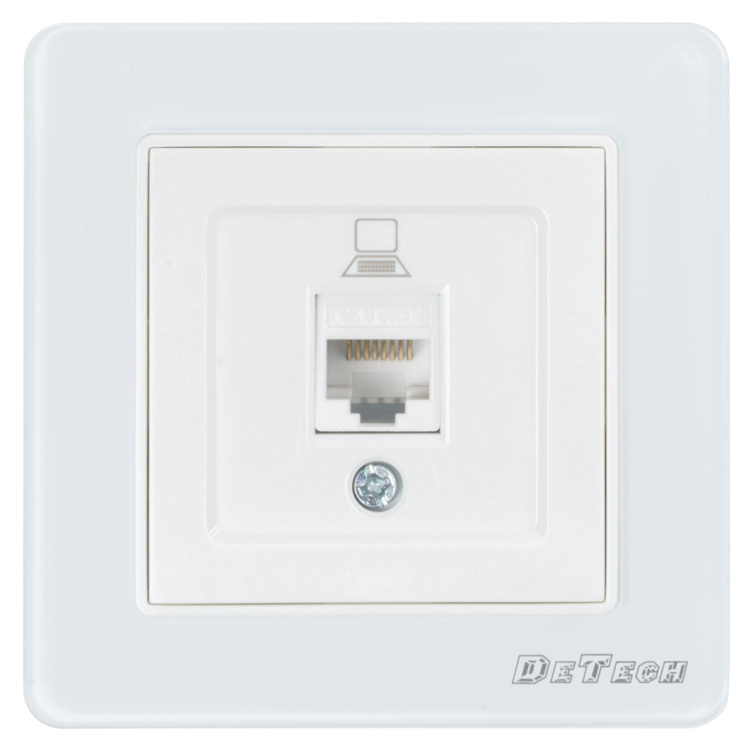 Единична розетка за компютър DeTech DE-6008-61, RJ45, Cat5E, За вграждане, IP20, Бял - 75006