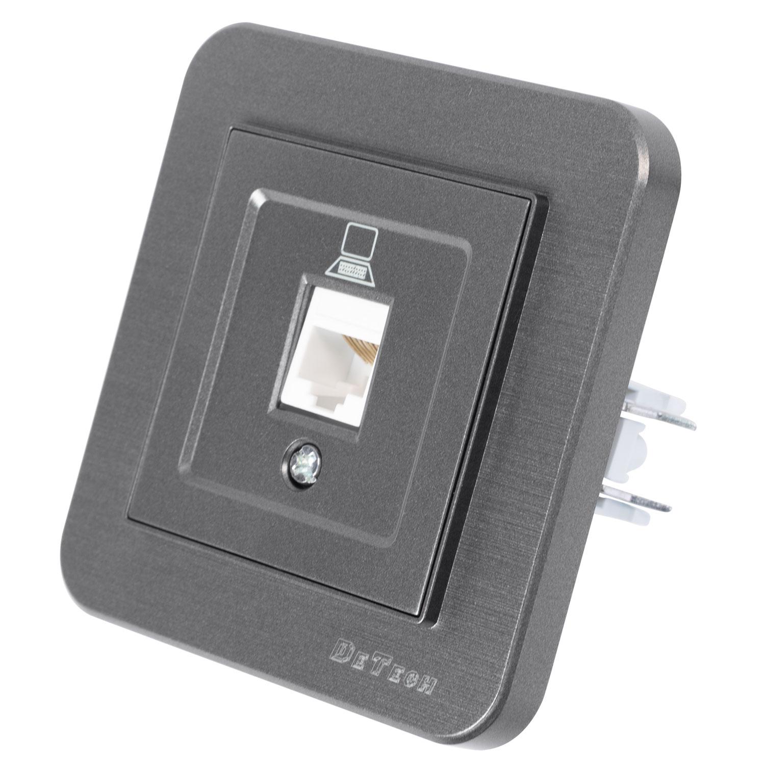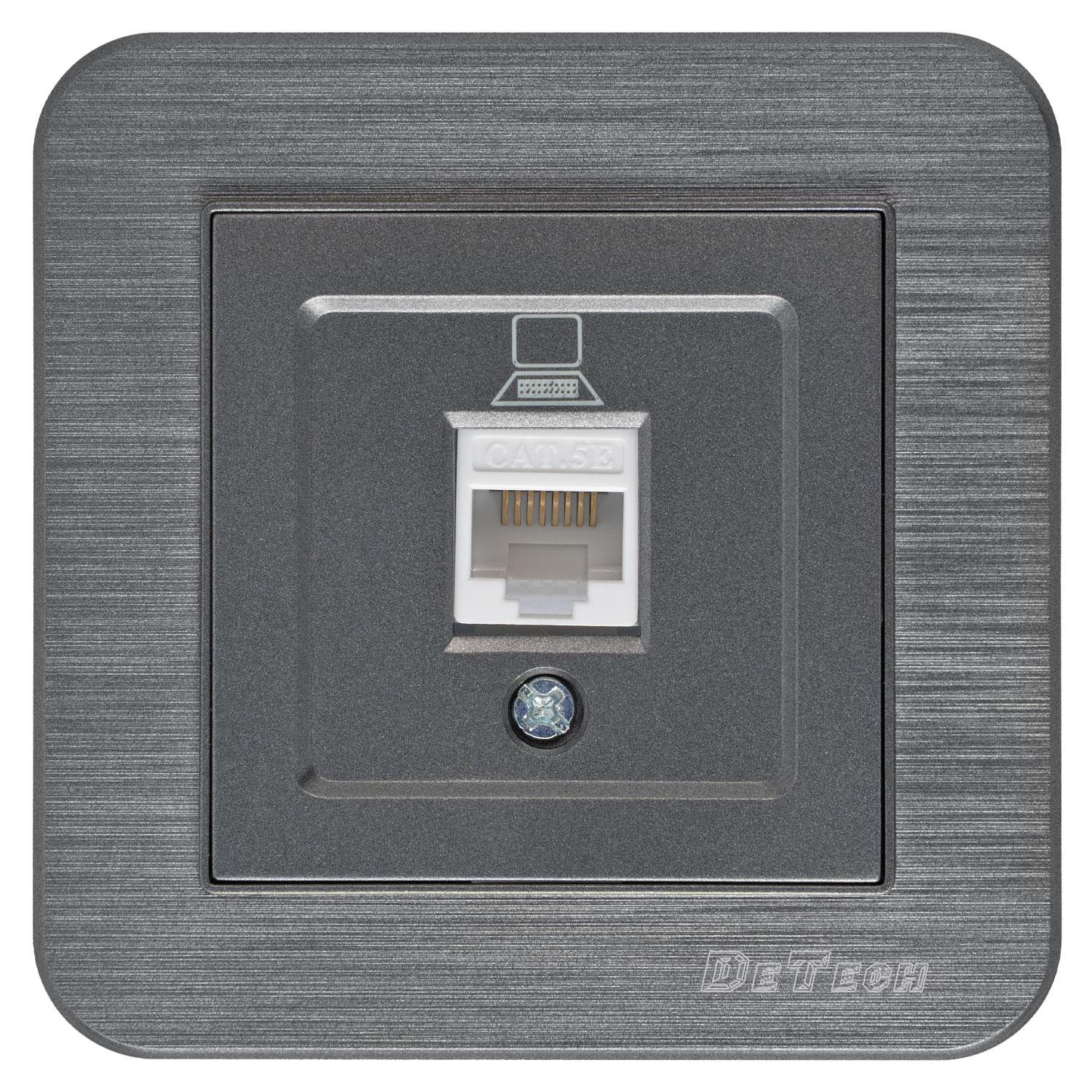 Единична розетка за компютър DeTech DE-9223-61, RJ45, Cat5E, За вграждане, IP20, Сив - 75065