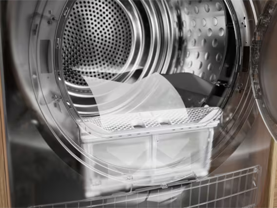 - Сензор за сушене: отчита кога дрехите са изсушени до желаното ниво : Електронното управление на този модел сушилня измерва влажността на тъканите и приключва сушенето при достигане на желаното ниво на изсушаване