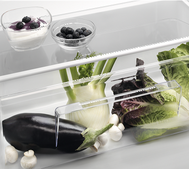 Гъвкавост при съхранение В прозрачното отделение за зеленчуци с пълна ширина лесно съхранявате по-големи и по-дълги продукти. Пазарувайте уверено, знаейки, че разполагате с удобството да съхранявате по-обемисти храни в хладилника си. | ![]() |