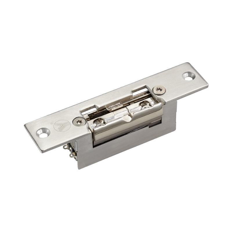 Насрещникът работи на 12 V DC (опция за 24 V), с ток около 280 mA при 12 V, има корпус от метал от неръждаема стомана и регулируема ширина на езика (~12.5–15.5 mm). Отличава се с висока устойчивост на корозия и дълъг живот (тествана за минимум 100 000 цикъла) и е сертифицирана по CE/FCC/REACH стандарти.