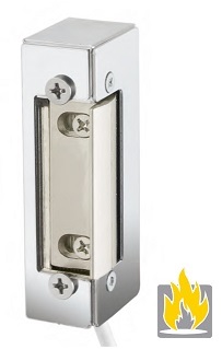EN Електрически насрещник за аварийни пожарни врати. Fail-secure, отключва под напрежение. Регулиране на челюста. Задържаща сила 1000kg. Преминал тест от 500 000 работни цикъла. Симетричен корпус: ляво/дясно. Захранване: DC24/120mA; Работна температура: -25°~70°C. Размери: 75.4х21х28mm, Челюст 6mm, регулиране 4mm. Сертификат: EN 13501-2:2004; EN 1363-1:2000; EN 14746; EN 1634-1:2000. Сертифициран за работа EI 120 min в условия на пожар.Подходящи планки: FP12, FP22.