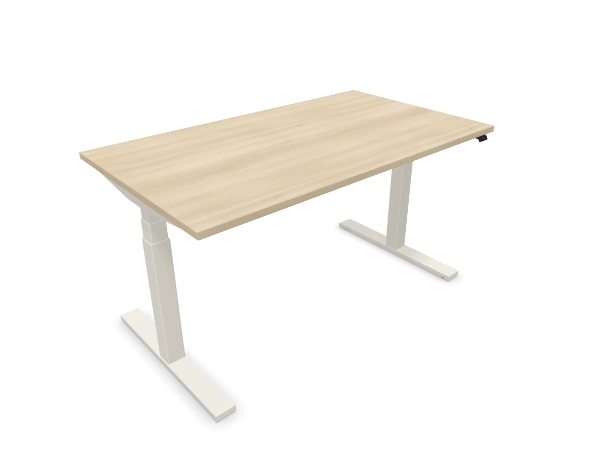 Електрическо бюро eModel 2.0, T Leg бяла рамка, 1400х800 мм,ПДЧ 25 мм, акация