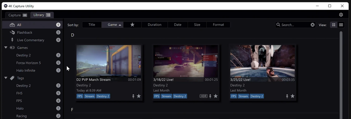 Elgato Capture software makes it incredibly easy to record high-fidelity gameplay, even while livestreaming in lower resolutions. Preserve your sessions in all their glorious detail. Catalog recordings in seconds. And export files for advanced editing in your favorite software.