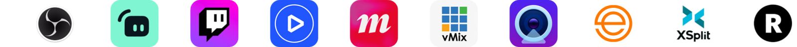With any app Just add 4K X as a source in OBS, Streamlabs Desktop, Twitch Studio, vMix, Meld Studio and more. | To any platform Stream with overlays, chat interactions, and commentary to Twitch, YouTube, Discord, TikTok, Facebook Gaming — anywhere. |