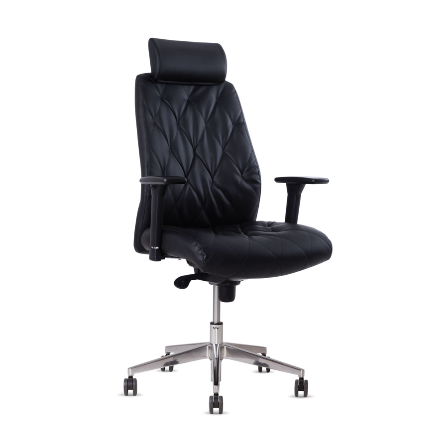 Ергономичен директорски стол Konsul UP Black, еко кожа, база алуминий, 3D подлакътници, черен