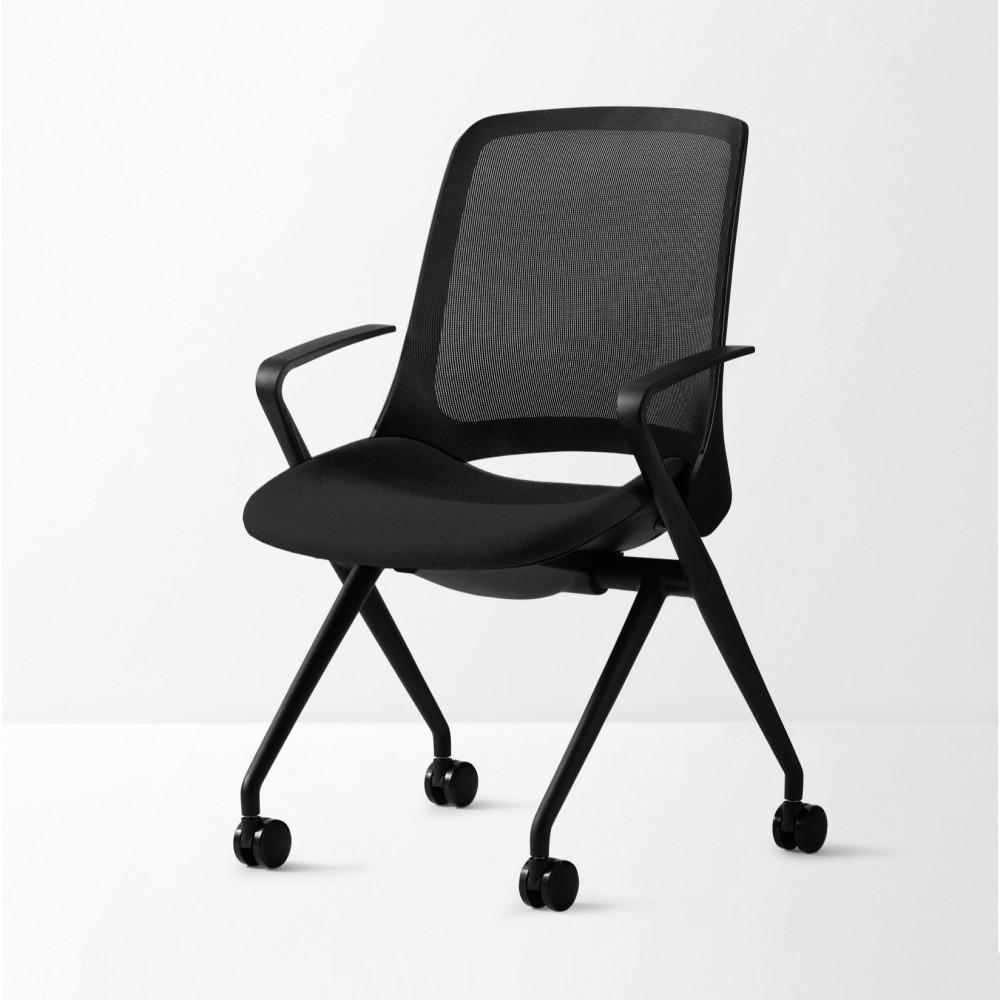 Ергономичен посетителски стол DAWON T5, мрежа и дамаска, черна база, 4 крака с колелца, черен