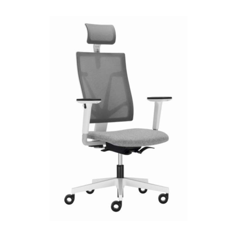 Ергономичен работен стол 4MЕ Mesh White HRUA, дамаска, бяла PP база, 2D подлакътници, сив