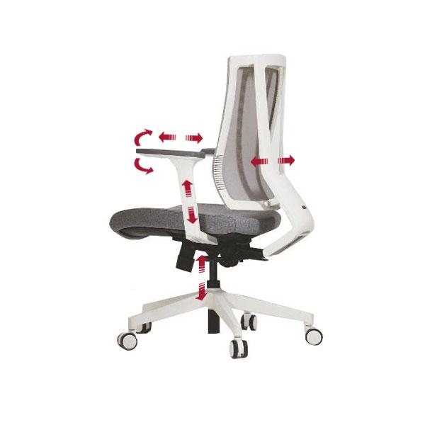 Ергономичен работен стол DAWON G1, мрежа и дамаска, бяла PP база, 3D подлакътници, сив
