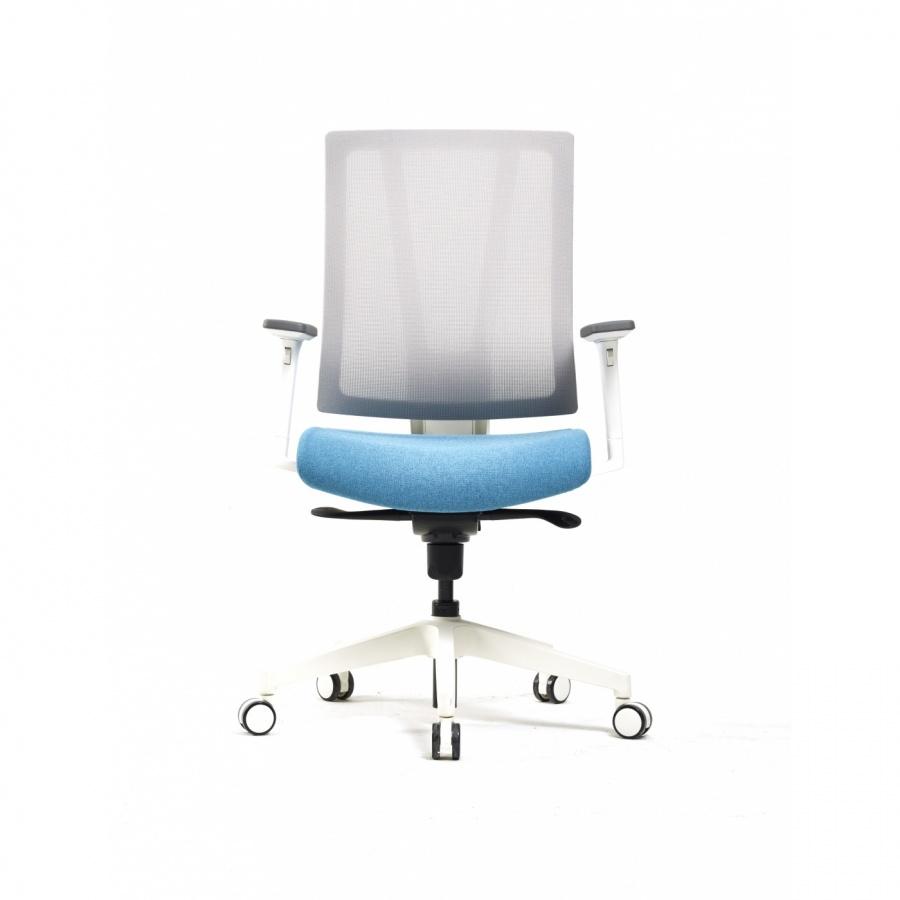 Ергономичен работен стол DAWON G1, мрежа и дамаска, бяла PP база, 3D подлакътници, сив/светлосин