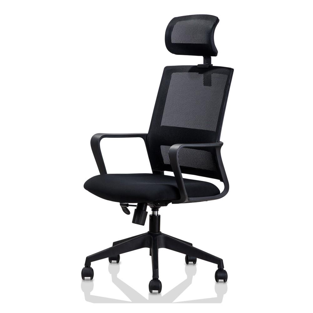 Ергономичен работен стол Deli VITTORIA,мрежа/дамаска,черна база,фикс. подлакътници,подглавник,черен