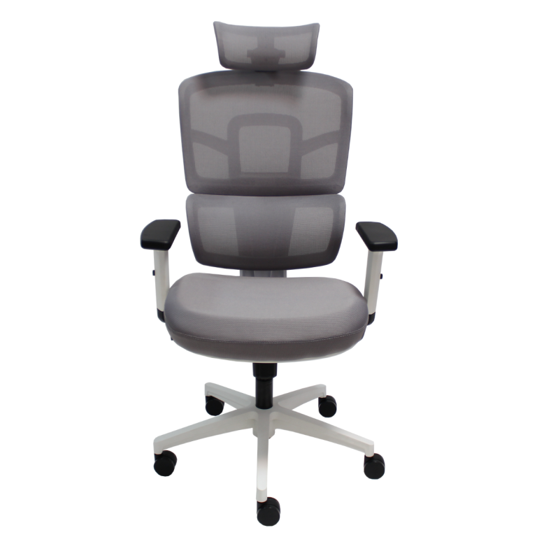 Ергономичен работен стол Ergo White, мрежа и дамаска, бяла PP база, 2D подлакътници, сив