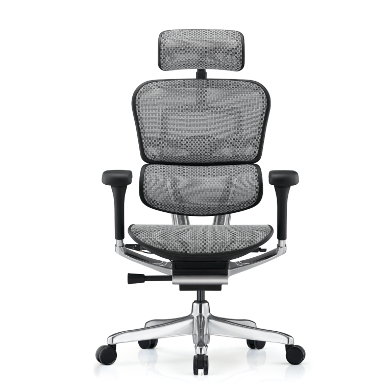 Ергономичен работен стол Ergohuman NEW, мрежа, база хром, 5D подлакътници, с опора, сив