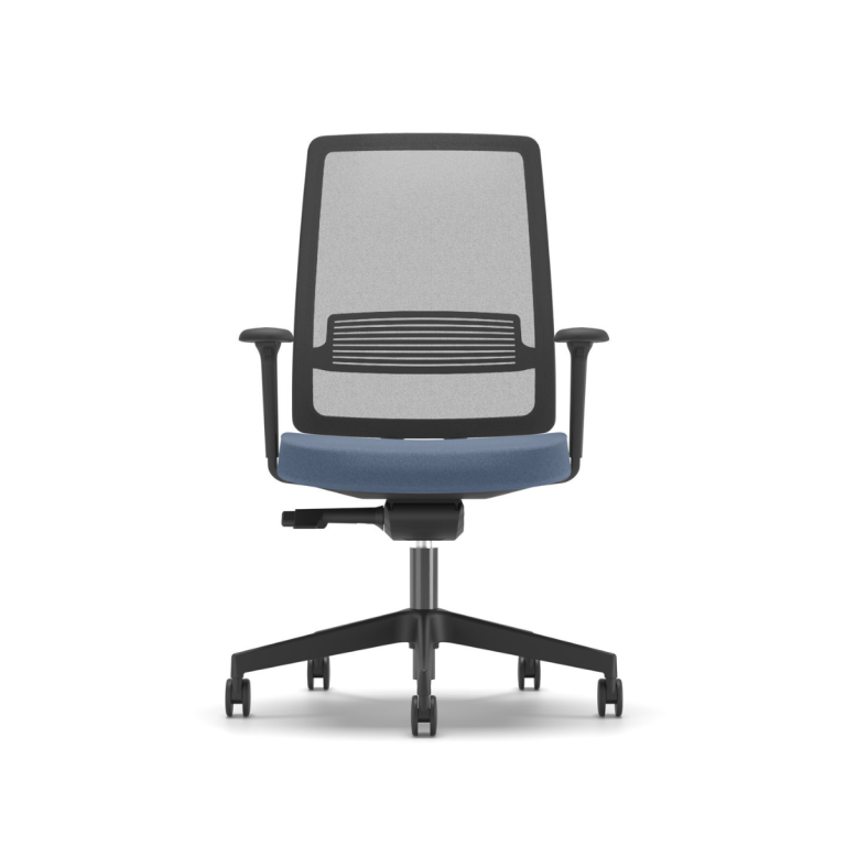 Ергономичен работен стол Lucio Black, мрежа и дамаска, черна PP база, рег. подлакътници, син